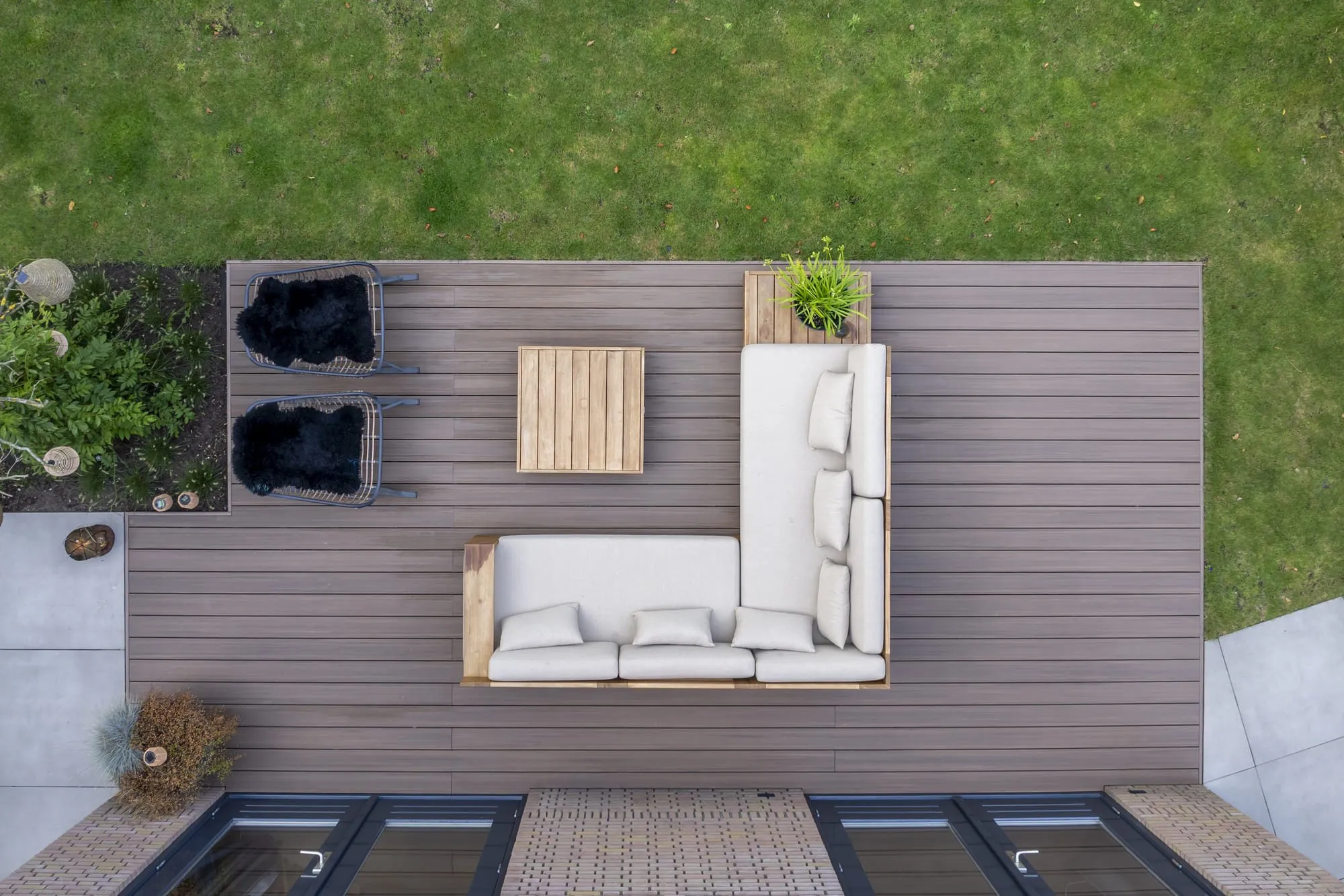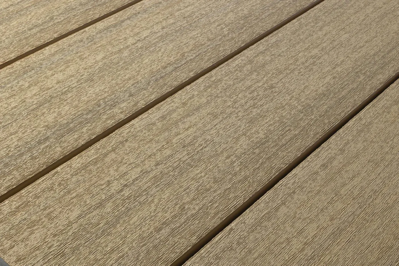 Les lames de terrasse Solera sont fabriquées à partir de PVC de haute qualité recyclé, offrant un choix durable, respectueux de l’environnement et robuste.